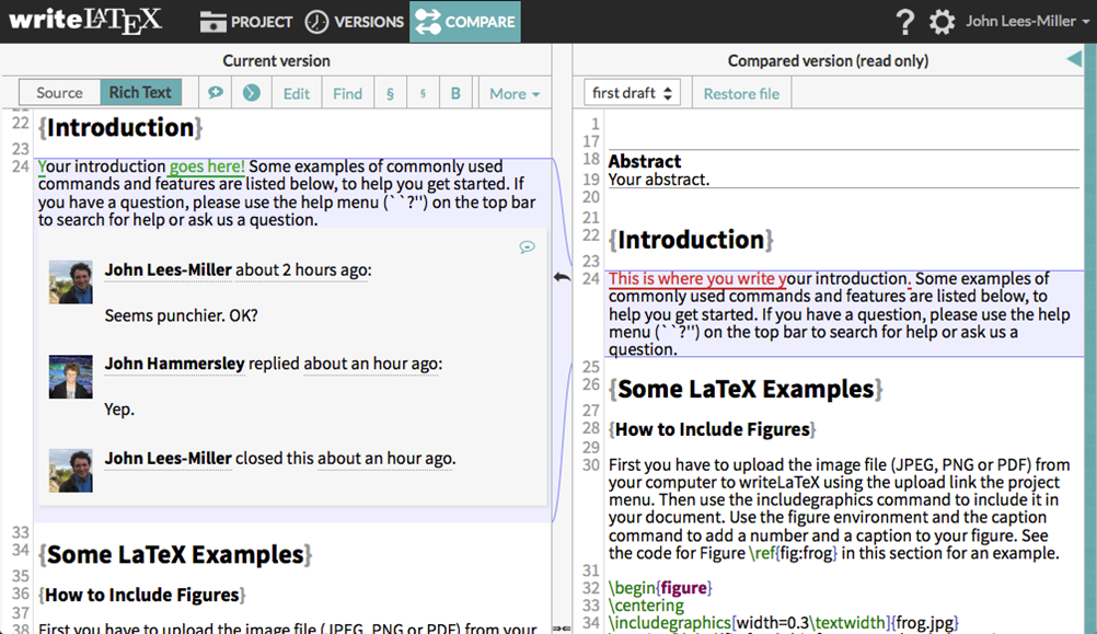 Rich Commenting Is Here Manage Your Feedback And Review On Writelatex Backtoschool Overleaf Online Latex Editor